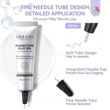 SAVILAND Rhinestone Glue for Nails: 2Pcs 20g Strong-Bond Nail Rhinestones Glue Gel with Precision Tip for Nail Charms, Gems and Jewels Decoration 3D Nail Art Gel Cured Need DIY Home Gift Women
