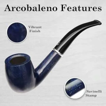 When it comes to choosing a handcrafted pipe, the Savinelli Arcobaleno Blue 606 KS stands among the best, thanks to its exceptional craftsmanship and unique design. Unlike many other mass-produced pipes, the Savinelli benefits from artisanal attention to detail, making it not only an accessory but also a collector's item. While some competitors may offer cheaper alternatives, they often lack the same level of quality, aesthetic appeal, and heritage that comes with the Savinelli name. The balance of function and design makes it a predominant choice for serious pipe smokers.