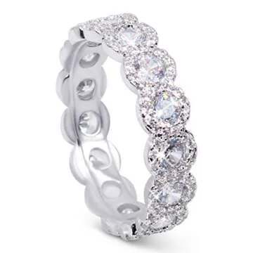 Savlano 18K White Gold Plated Cubic Zirconia Round Cut Eternity Ring Band for Women (10)