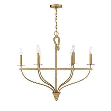 Savoy House 1-1823-6-320 Charter 6-Light Chandelier in Warm Brass and Rope (32" W x 28"H)