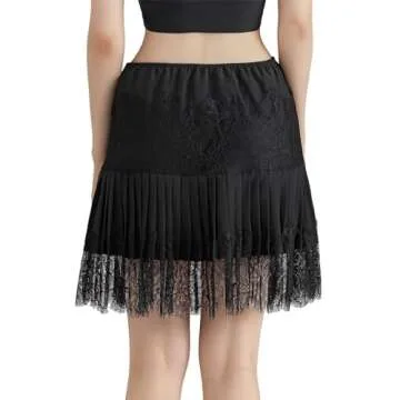 Sawden Women Lace Skirt Ruffle Mini Skirt Half Slip Layered Pleated Flowy Skirt Black S