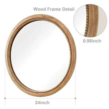 sawsile Round Decorative Mirror 24inch Circle Farmhouse Style Mirror Rustic Natural Wooden Frame Beads Mirror for Bedroom, Bathroom, Living Room or Entryway
