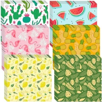 Show moreExperience the ultimate wrap for your culinary creations with the Sayglossy 960 Pcs Hawaiian Wax Paper Sheets. This delightful collection includes 960 sheets in 6 stunning designs, with each vibrant theme showcasing classic Hawaiian elements like watermelon, flamingos, cacti, pineapples, palm leaves, and lemons. Use them to effortlessly add a touch of the tropics to your gifts or culinary delights, whether you're wrapping sandwiches or serving up treats at gatherings. Each design is tailored to reflect the lively spirit of summer, ensuring your presentations are not only functional but visually appealing.