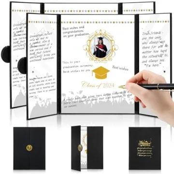 Unlike many graduation guest books available on the market, the Sayglossy Graduation Signature Board stands out due to its dual offering of two guest books along with matching pens, ensuring that every guest has an opportunity to express their wishes. Its stylish design coupled with generous writing spaces elevates it beyond typical options that often sacrifice either aesthetics or function. Its strong materials ensure longevity, making it a better investment as a keepsake compared to flimsier alternatives.