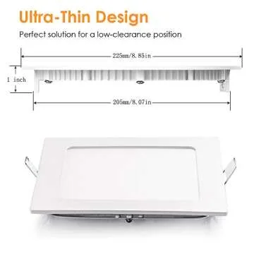 SAYHON 8 inch Ultra-Thin Square Recessed Lighting with Junction Box,18W 6000K White,Low Profile Ceiling Light Kit Downlight for Office/Commercial Lighting/Kitchen/Hallway