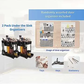 SBD 2 Pack UnderSink Organizers - Versatile Under Cabinet Storage Solution