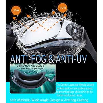 Safety is our priority, which is why these goggles come with UV protection. The lenses are treated to effectively block harmful UVA and UVB rays from the sun, making them perfect for any aquatic adventure, whether it's snorkeling, beach outings, or swimming in your favorite pool.