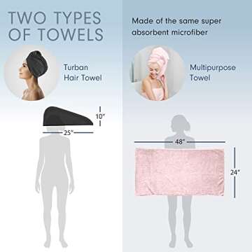 Scala (2 Pack Extra Large Microfiber Hair Towel 24" x 48" Anti Frizz for Long Hair, Multipurpose Bath Towel for Pool, Gym, Yoga, Camping - Quick Drying, Ultra Absorbent - Light Pink Towels