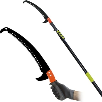 Show moreThe Scalebelly Telescoping Pole Saw is the ultimate tool for anyone looking to maintain their garden or outdoor space with ease. This 2-in-1 saw allows you to switch seamlessly between a hand saw and a pole saw, making it perfect for both ground-level and high-reach trimming. With its adjustable length, you can extend the pole from 4 to 28 feet in four stages, thanks to the flip-tab clasp design. Lock it securely for easy and stable high branch pruning. The ultra-sharp dual hook blades are made from durable Mn steel, ensuring lightweight, rust-resistant, and designed for fast, clean cuts. Assembly is a breeze, with no tools required for setup or storage. Its robust design prevents bending or breaking, and cleaning is straightforward. Ideal for trimming tall trees in your garden, lawn, or outdoor space, this pole saw lets you handle those elevated branches with ease and confidence.