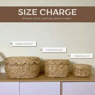 Scalloped Basket with Lid Set of 3,Stackable Baskets for Organizing, Scalloped Wicker Basket, Woven Basket With Lid, Water Hyacinth Storage Baskets with Lid, Basket With Lid Decorative Storage