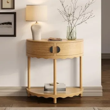 Show moreIntroducing the Scalloped Skirt Half Moon Console Table, a delightful fusion of style and utility that elevates your home decor. Crafted with meticulous attention to detail, this table is perfect for those who seek both form and function in their living spaces. The natural oak finish enriches the table's sleek design, while the distinctive scalloped edges provide a charming touch that complements any aesthetic—be it modern or traditional. Ideal for displaying photos, plants, or a curated collection of books, this versatile piece fits seamlessly into your entryway, living room, or hallway.