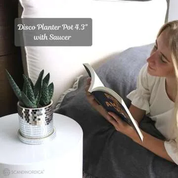 SCANDINORDICA Disco Ball Planter Pot - 4.3 inch Disco Ball Vase, Disco Planter, Ceramic Planter Pots Indoor with Drainage Hole and Saucer, Cute Eclectic Decor, Preppy Room Decor | 0.3" Mirror Tiles