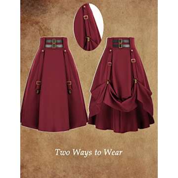 While other skirts may provide style, the Scarlet Darkness Burgundy Skirt stands out in the market for its adjustable high-low design and its superior mix of aesthetics and comfort. Unlike many competitors that focus solely on looks, this skirt emphasizes wearability, utilizing quality materials that are lightweight and comfortable for long wear. Its unique buckle design isn't just for show; it allows for versatility that is often lacking in similar products, giving you more options to express your personal style.