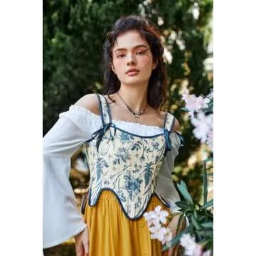Scarlet Darkness Floral Corset Tops for Women Medieval Renaissance Lace Up Overbust Bodice Blue Floral Size 6