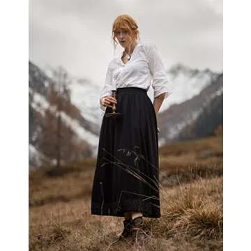 Scarlet Darkness Long Maxi Skirt for Women - Elastic High Waist Renaissance Style with Pockets
