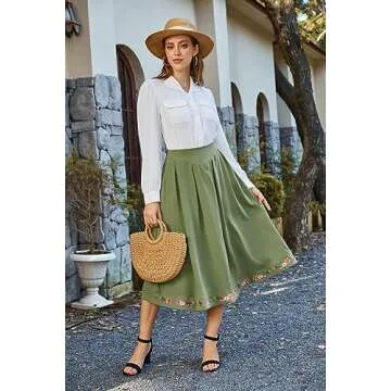 Show more Discover the enchanting Scarlet Darkness Women's Green Midi Skirt, designed for the modern plus-size woman who treasures sophistication and vintage charm. This stunning light green embroidered Renaissance Victorian skirt features exquisite embroidery that pays homage to Victorian elegance while ensuring comfort and style for your everyday adventures. Crafted with a perfect balance of soft and breathable fabric, it drapes beautifully around your silhouette. The versatile design allows you to pair it effortlessly with various tops, making it a must-have addition to any wardrobe.