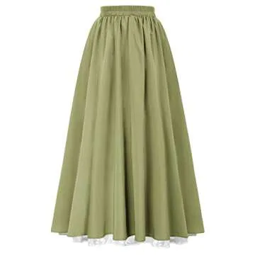 Show moreStep into a realm of elegance and versatility with the Scarlet Darkness Women's Maxi Skirts Victorian Renaissance Goth Double Layer Skirt. Tailored for the modern woman who embraces both comfort and style, this skirt is not just a piece of clothing but an expression of your unique aesthetic. The rich, olive green hue brings a touch of nature to your wardrobe, while the double-layer design ensures that each movement flows gracefully, making it perfect for a variety of occasions.