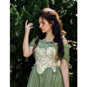 Scarlet Darkness Women Victorian Lace Up Corset Top Vintage Fishbone Floral Bodyshaper Bustier Green Floral Size 10