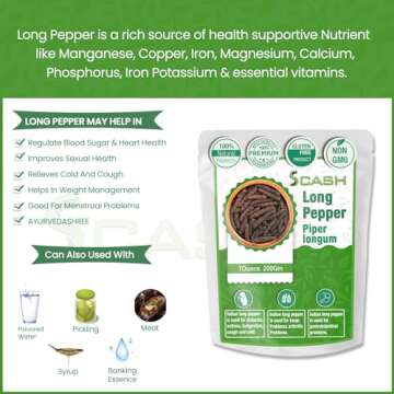 Unlike typical black pepper that can be readily found in most grocery stores, Scash Long Pepper Whole stands out with its exotic flavor and nutritional benefits. While common black pepper may deliver heat, long pepper offers a balance of sweetness and spice that enhances dishes in a unique way. Additionally, Scash guarantees a 100% natural product with no fillers or artificial ingredients, ensuring that every meal you prepare is not only flavorful but also wholesome.