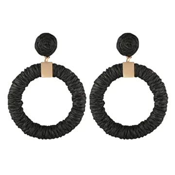 Scddboy Raffia Earrings for Women,Bohemian Earrings Handmade Braid Hoop Drop Dangle Earrings