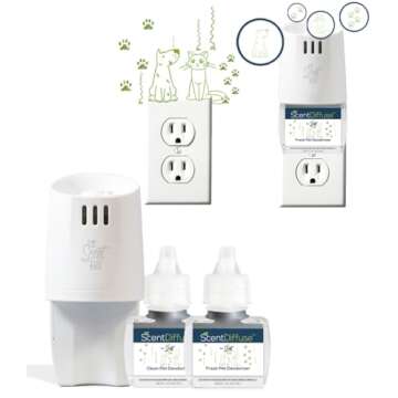 ScentDiffuse Pet Odor Deodorizing Air Freshener Starter Kit, 2 Refills + Diffuser