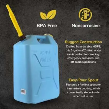 Introducing the Scepter 5 Gallon Water Jug – Your Ultimate Hydration Companion! Designed specifically for outdoor activities, emergency situations, and off-road adventures, this rugged water can is built to last. Constructed from food-grade polyethylene plastic, it guarantees that your water stays free from undesirable taste, odor, and harmful chemicals. With its large capacity of 5 gallons (20 liters), this water container seamlessly fits into your camping...