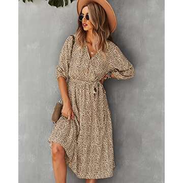 Show moreIntroducing the Schkleier Women's Summer Fall 3/4 Sleeve V Neck Casual Party Floral Flowy Midi Dress, a stunning addition to your wardrobe that seamlessly blends elegance and comfort. Designed with a flattering V neck and a waist belted silhouette, this dress accentuates your figure while providing ease of movement. Its midi length and 3/4 sleeves make it perfect for a range of occasions, from casual outings to formal events. The soft, flowy fabric drapes beautifully, ensuring you stay stylish and comfortable no matter the season.