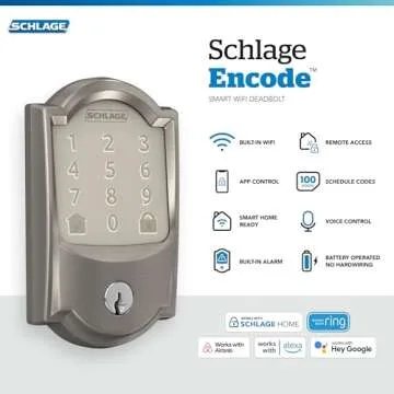 Schlage Encode Smart Wi-Fi Deadbolt with Camelot Trim in Satin Nickel