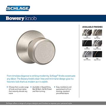 Schlage F40 BWE 622 Bowery Door Knob, Bed & Bath Privacy Lock, Matte Black