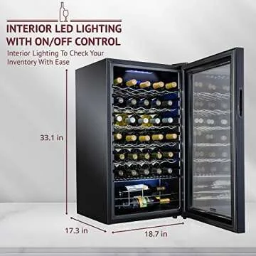 Show more Introducing the SCHMECKE 34 Bottle Compressor Wine Cooler Refrigerator, an elegant solution crafted for wine enthusiasts who seek to preserve their cherished collection in optimal conditions. Built with advanced compressor technology, this wine cooler maintains a consistent temperature even amidst varying external heat sources, ensuring that your wines are stored perfectly. With a generous temperature range between 41°F and 64°F, it is expertly designed to accommodate everything from sparkling whites to rich red wines, allowing each bottle to mature and develop its unique flavors.
