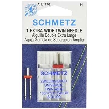 The SCHMETZ Twin Needles are designed for medium to lightweight fabrics, ideal for quilting, garments, and decorative sewing.