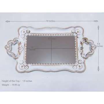Schonee Rectangle Decorative Mirror Tray Vanity Tray for Makeup Jewelry Organizer,Perfume Display Tray,Plastic Serving Tray (White with Gold)
