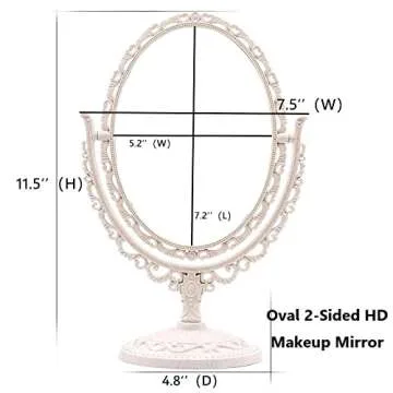 Show moreIntroducing the Schones Geschaft 2-Sided Tabletop Makeup Mirror, a charming accessory for any beauty enthusiast wishing to blend elegance with functionality. The vintage design, featuring a delicate beige color and a classic oval shape, brings a touch of nostalgia to your vanity. With dimensions of 7.5’’(W) x 11.5’’(H), this mirror is perfectly sized for dressing tables, bedrooms, or bathrooms, adding a stylish flair wherever it sits.