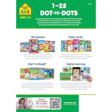 Show more The perfect blend of fun and educational value, this Connect the Dots Workbook is designed to help children enhance their fine motor skills and number recognition in a playful manner. Each page features double-sided connect-the-dot drawings, where kids will find themselves drawing from numbers ranging from 1 to 25. The medium-weight paper ensures a smooth writing experience, making it suitable for various coloring tools. Children will enjoy revealing delightful images while honing their counting skills, making learning a joyous activity.