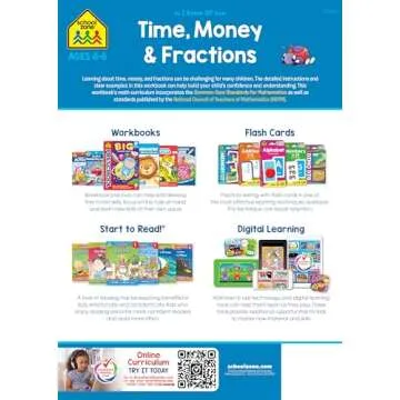 School Zone - Time, Money & Fractions Workbook - 32 Pages, Ages 6 to 8, 1st and 2nd Grade, Adding Money, Counting Coins, Telling Time, and More (School Zone I Know It!® Workbook Series)