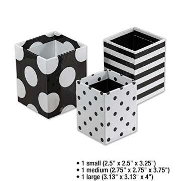 Schoolgirl Style Simply Stylish 3-Piece Polka Dot Pencil Cup Holder Set, Assorted Black and White Pencil Cup Holders, Classroom Supplies Organizer for Desk Organization, Black & White Classroom Décor