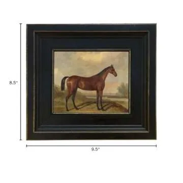 Elegant Equestrian Art - Schooner Bay Co. Oil Painting Canvas Print, Rustic Frame 8-1/2" x 9-1/2"