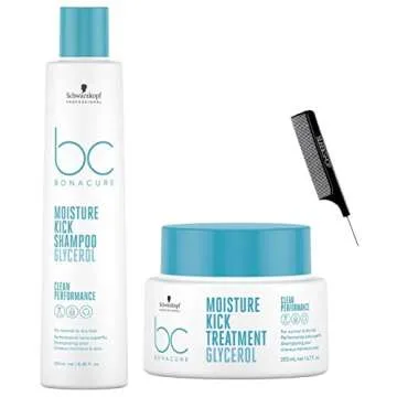 Schwarzkapf BC Bonocure MOISTURE KICK GLYCEROL Shampoo & Treatment DUO Kit SET for Normal to Dry Hair, Newest 2023 Formula (w/ SLEEKSHOP Steel Pin Rat Tail Comb) Clean Hair Performance, Vegan (Shampoo (8.45 oz) + Treatment (6.7 oz))