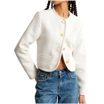 SCOFEEL Cropped Tweed Blazer Jackets for Women Elegant Slim Collarless Business Casual Outfits White