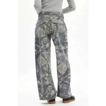 SCOFEEL Women Camo Jeans Wide Leg Denim Pants Mid Waist Baggy Jeans