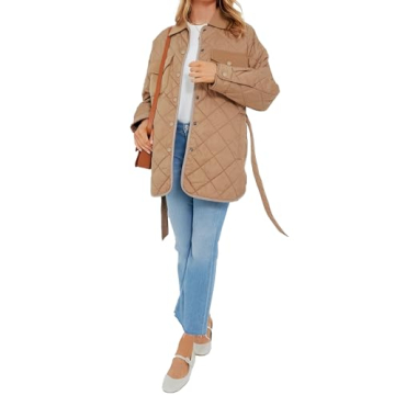 SCOFEEL Women's Lightweight Quilted Jackets Casual Long Sleeve Spread Collar Outerwear Coat With Pockets