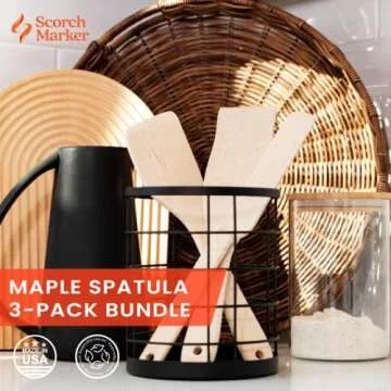 Scorch Marker Maple Spatulas for Woodburning and Pyrography, Spatula Set for Crafting with Scorch Markers, Smooth Maple Cookware for Kitchen Use or Decoration, (Set of 3)
