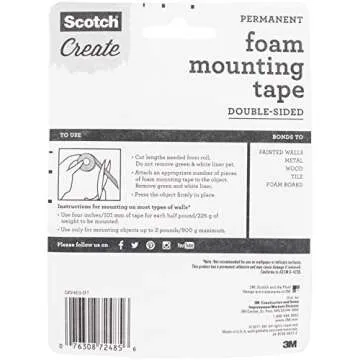 What sets Scotch Foam Mounting Tape apart is its multi-purpose functionality. It bonds effectively to various surfaces including wood, metal, and plastic, giving you the flexibility to use it in any room of your home or workspace. Its clean and professional finish, combined with its white color, allows it to blend seamlessly into your decor, while providing the strength you need for both lightweight and heavier items.