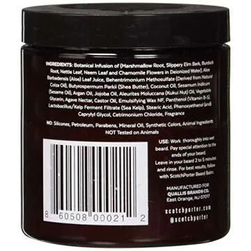 The Scotch Porter brand prides itself on using ALL NATURAL INGREDIENTS. Our proprietary blend features an array of botanically-infused, 100% natural components such as marshmallow root, slippery elm bark, nettle leaf, shea butter, coconut oil, aloe vera, agave nectar, and Kukui nut oil, among others. Each ingredient is meticulously selected to provide your beard with the utmost nourishment, making it the ideal choice for men who favor quality and performance in grooming products.