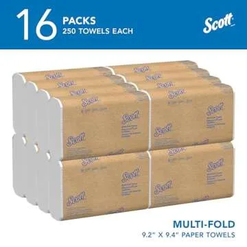 Show moreIntroducing the Scott® Professional Multifold Paper Towels—the perfect solution for your cleaning and hygiene needs. Each pack contains 250 sheets, with a total of 4,000 sheets available in a compact case, making it ideal for both residential and commercial use. Crafted by Kimberly-Clark Professional, these paper towels feature exclusive Absorbency Pockets designed to soak up water quickly, ensuring that waste is minimized while efficiency is maximized. With dimensions of 9.2" x 9.4", these multifold towels fit into most universal dispensers, providing a convenient alternative to C Fold towels that often over-dispense.