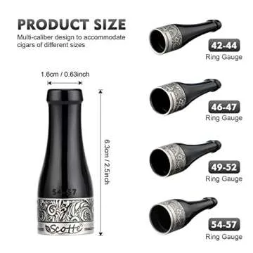 Elevate your cigar experience with the Scotte Cigar Mouthpiece. Crafted from premium food-grade resin and copper, this mouthpiece ensures you enjoy your cigars to the fullest. Known for its remarkable durability and high temperature resistance, it is an ideal companion for your smoking moments. Its thoughtful design accommodates a variety of cigar ring gauges (42-44, 46-47, 49-52, and 54-57), allowing you to savor the last centimeter without compromising flavor. With its sleek black and silver aesthetics, it’s not just a functional accessory but a statement piece that will impress fellow aficionados.