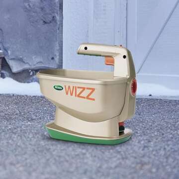 Scotts Wizz Spreader for Grass Seed, Fertilizer, Salt and Ice Melt, Handheld Spreader Holds up to 2,500 sq. ft. of Product