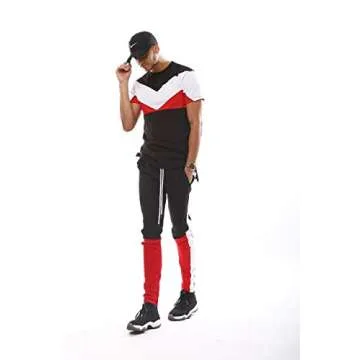 Show moreIntroducing the SCREENSHOTBRAND-P41705 Mens Hip Hop Streetwear Premium Slim Fit Track Pants - an ultimate blend of comfort, style, and functionality. Designed for the modern man who loves to incorporate streetwear into his wardrobe, these track pants feature a contemporary color block design in bold black and red, making a striking statement wherever you go. Crafted with high-quality fabric, they are not only breathable but also versatile enough for both athletics and casual outings. The slim fit cut ensures a flattering silhouette while allowing for ease of movement, making them a staple for any active lifestyle.