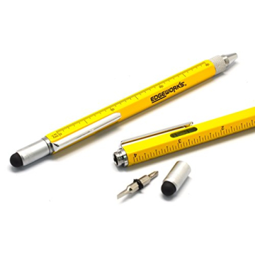 Screwdriver Pen Pocket Multi-Tool By EdgeWorks – Multi-Functional & Sturdy Aluminum DIY Tool, With Screwdriver, Stylus, Bubble Level, Ruler & Phillips Flathead Bit, Unique Gift Idea - Yellow