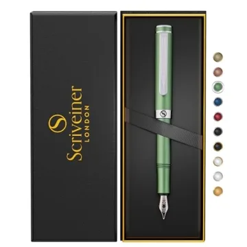 Experience the flawless writing and undeniable elegance of the Scriveiner luxury fountain pen, designed for those who appreciate understated luxury and superb craftsmanship. This pen, created by a recognized boutique British brand, features a stunning matte green anodized aluminum body that resists scratches while enhancing its visual appeal with silver chrome finishes. Every detail of this exquisite pen speaks to precision engineering and attention to quality,...